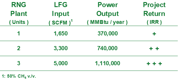One or several gas upgrade units can be implemented side by side for the same RNG project.